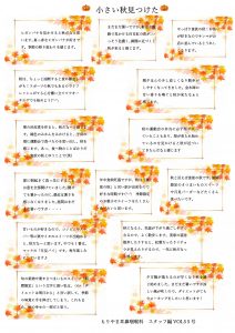 また、職員には「小さい秋見つけた」時は、どんな時かを各自の思い出としてエッセイにしてもらいました。